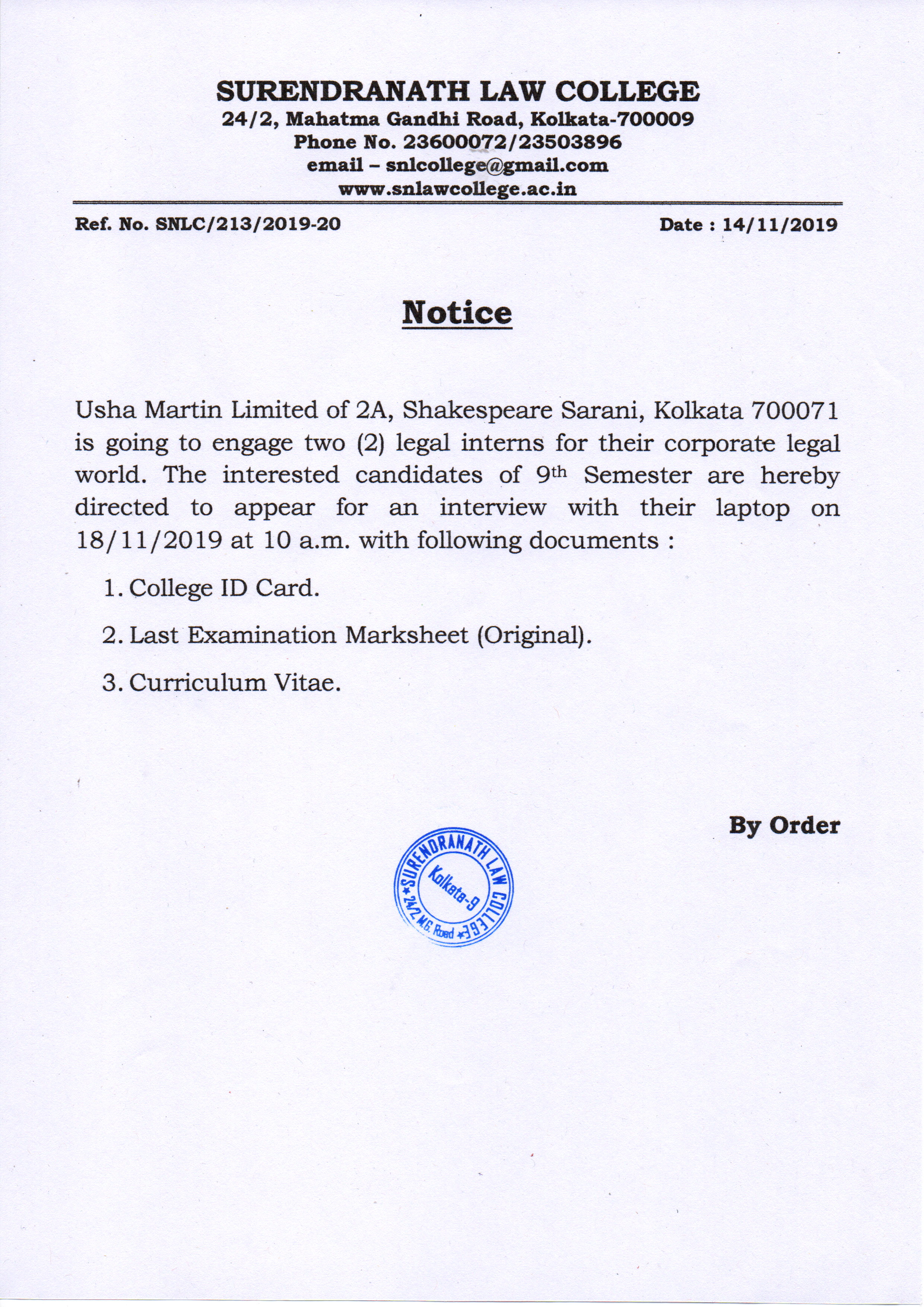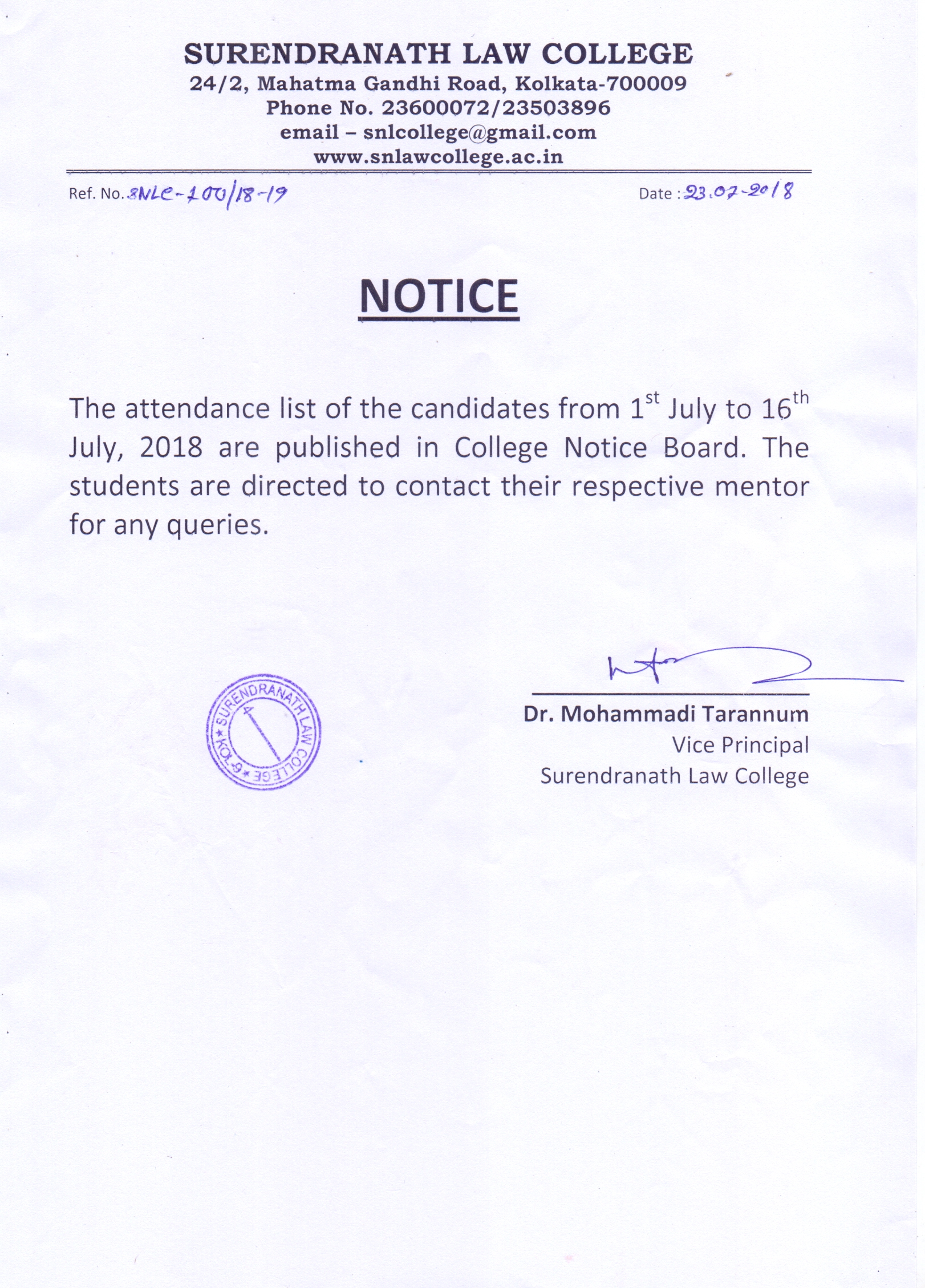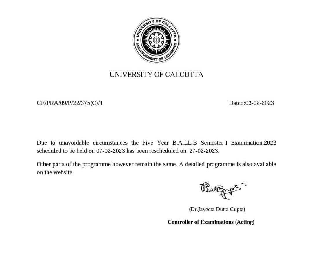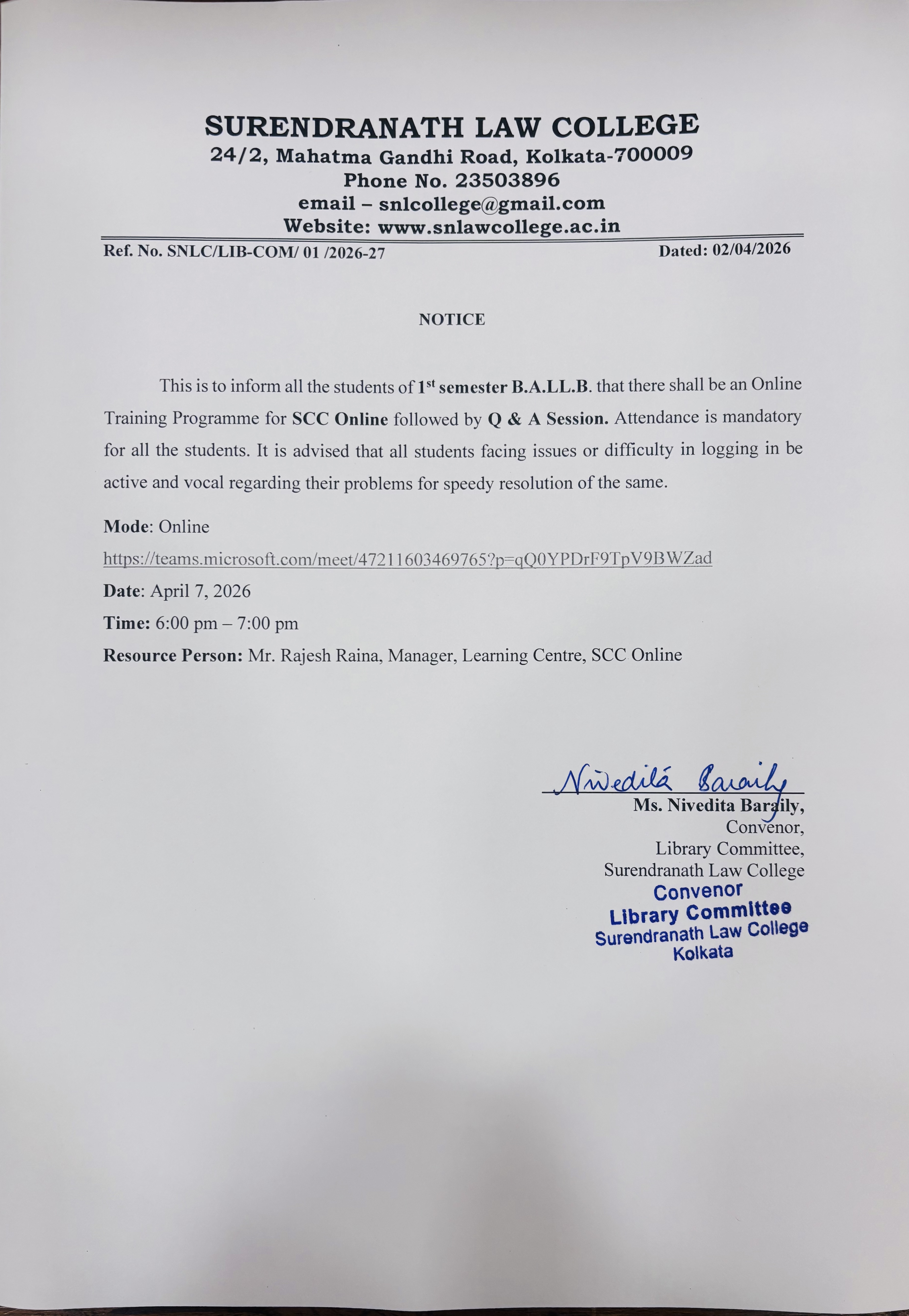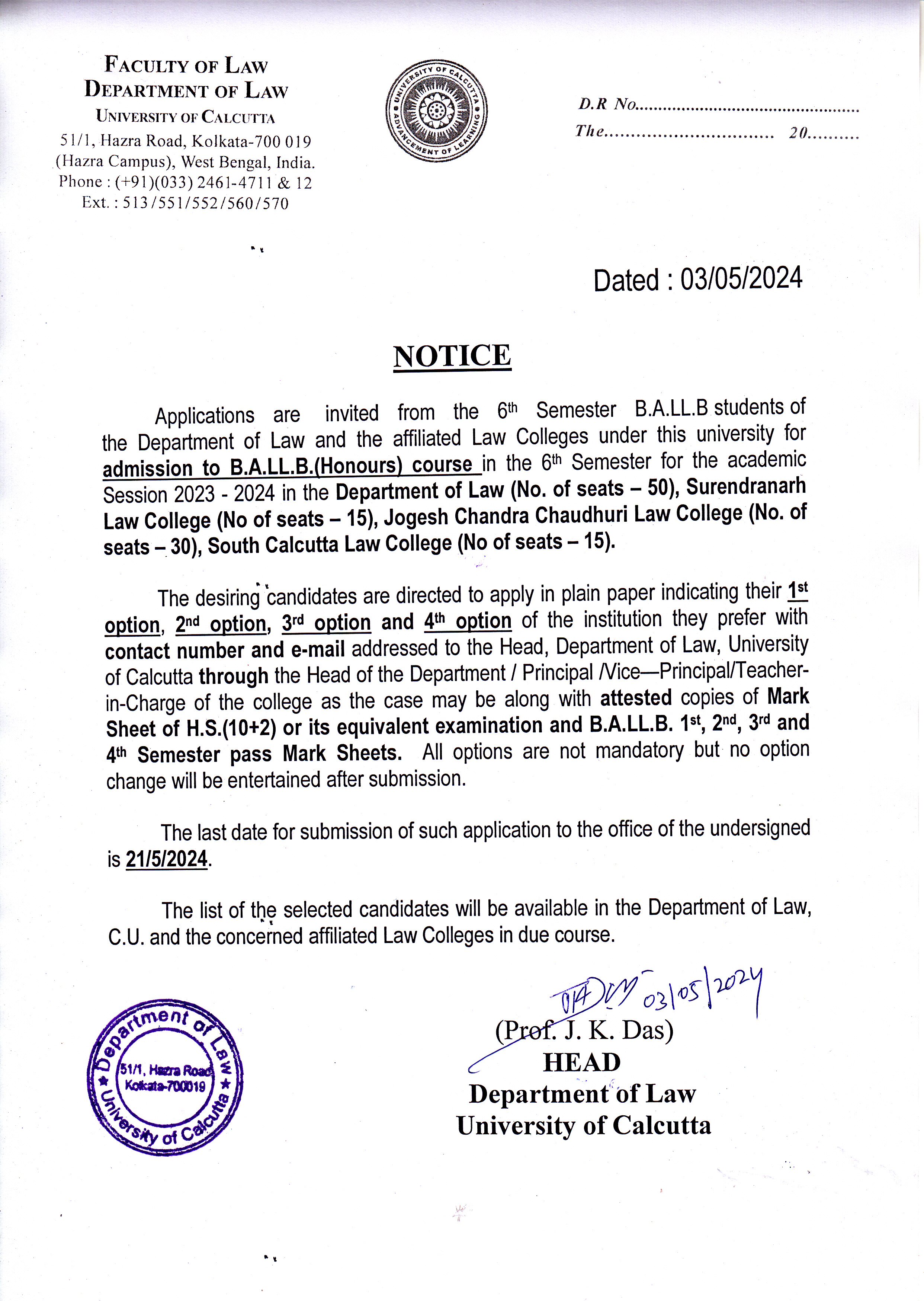Marksheets of 1 Semester Examination 2024 will be distributed on 12.03.2026 and 13.03.2026 from 9.00 A.M. to 12.00 Noon from college office. The students are hereby directed to contact with Mrs. Ranjita Mukherjee Kundui and the students must bring original Admit Card of that examination