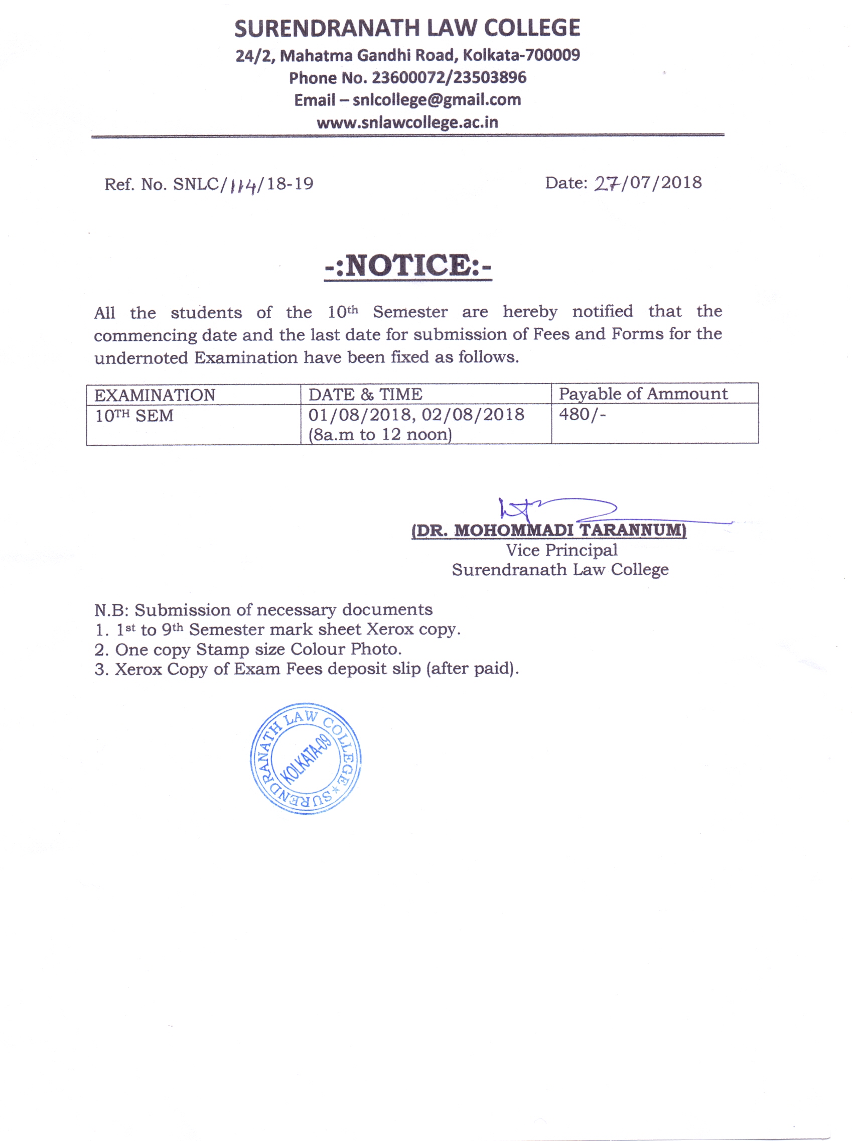 NOTICE FORM FILL UP_9TH SEM CU EXAM 2018-2019