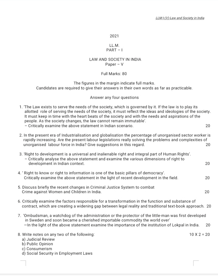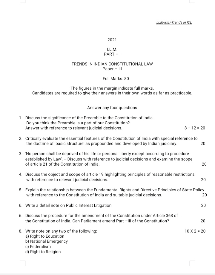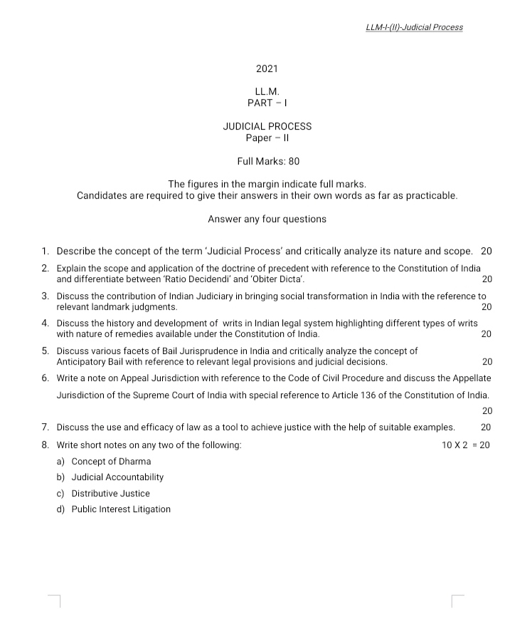 Review for Five Year B.A. LL.B. Semester I Examination, 2024