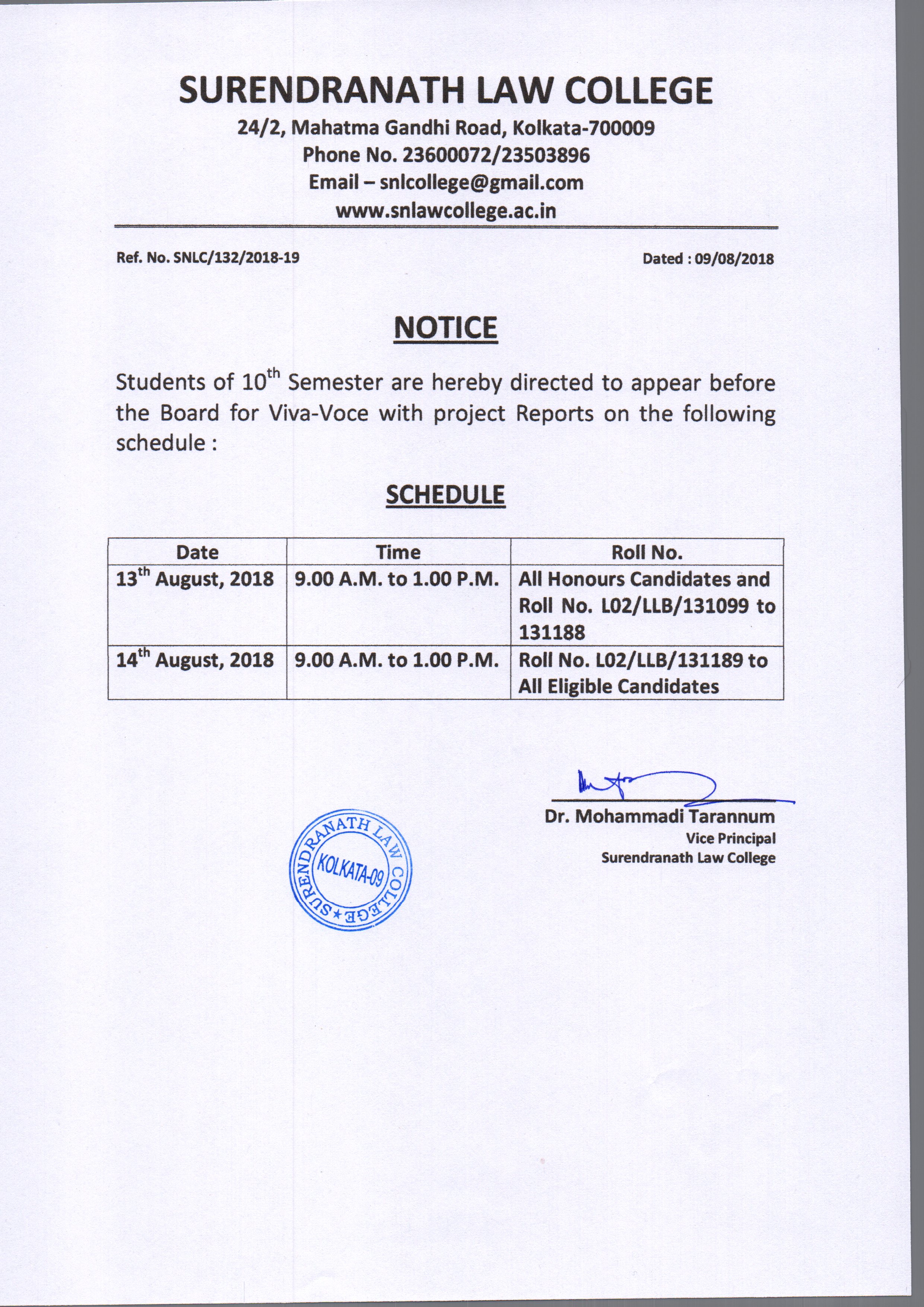 Notice: Postponement of Presentation-cum-Viva for Semesters 3, 5, 7 & 9