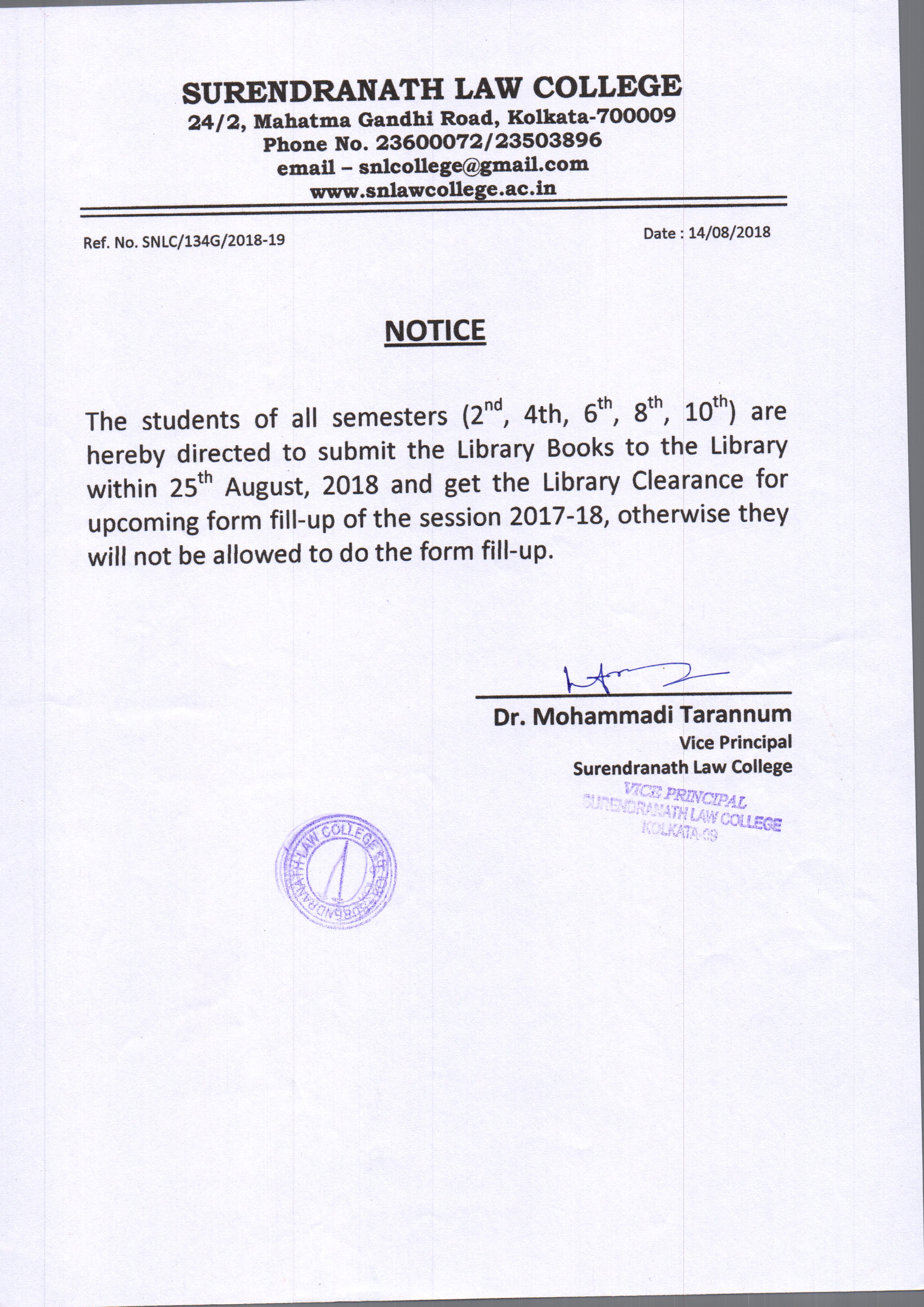 NOTICE_LIBRARY CLEARANCE_2, 4, 6, 8, 10TH SEM