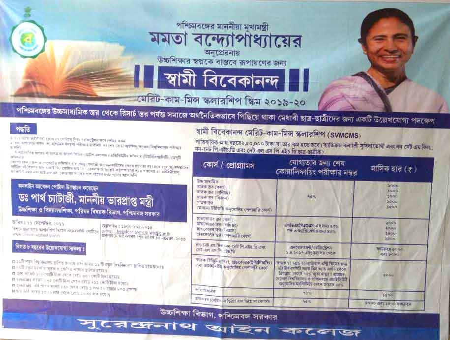 SWAMI VIVEKANANDA MERIT-CUM-MEANS SCHOLARSHIP 2018-19