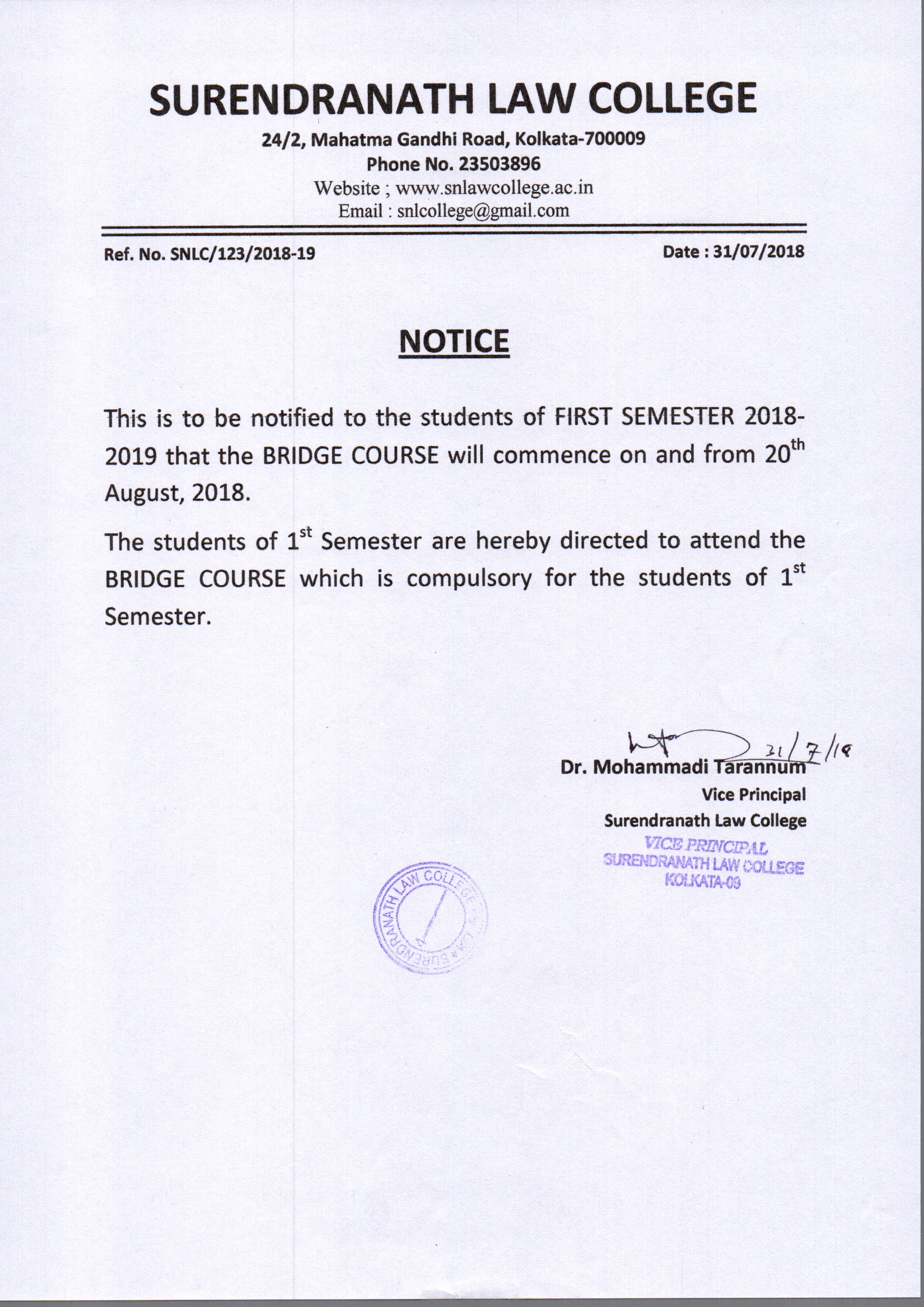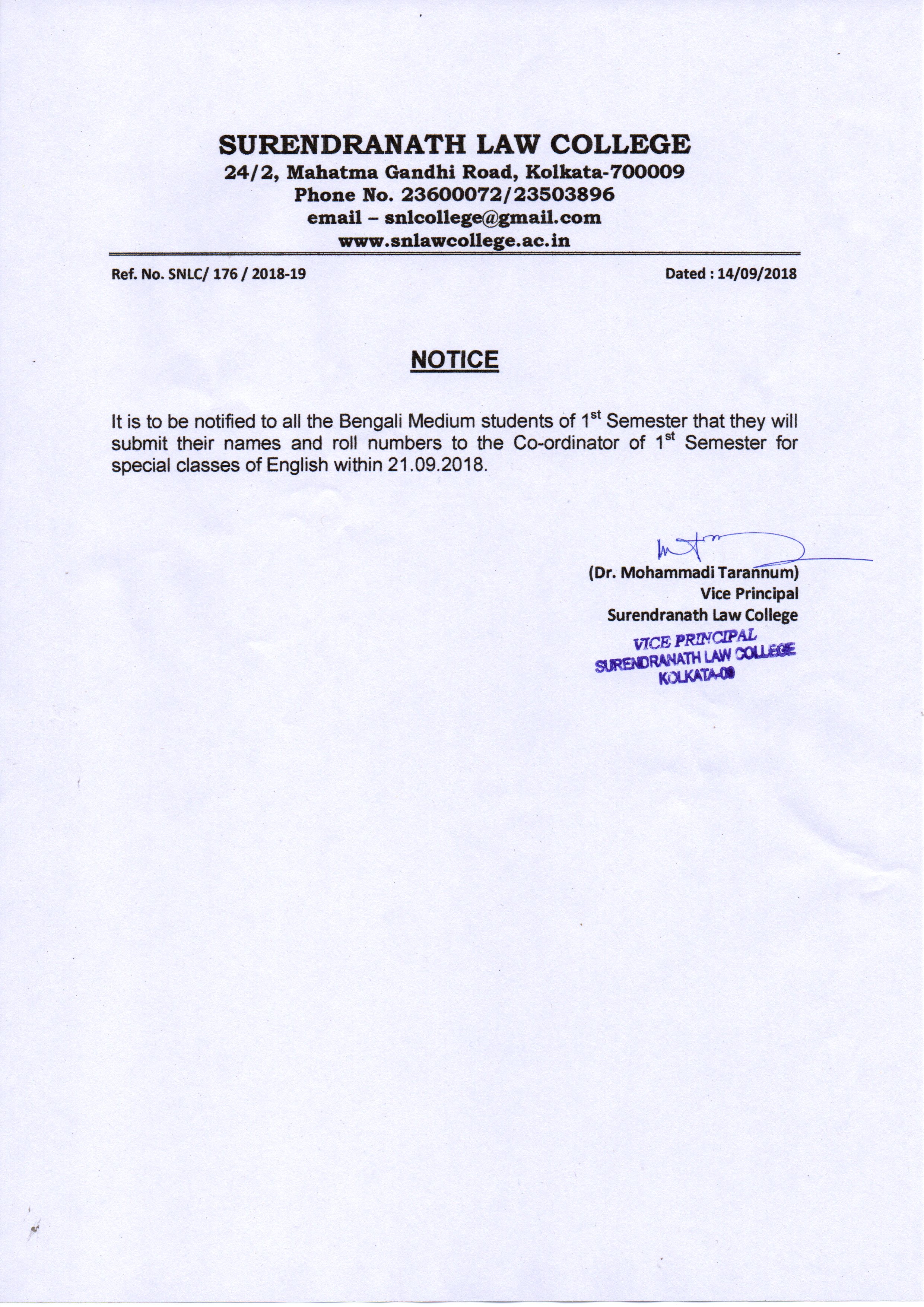 Notice_Communicative English Course Class_1st Sem_Bengali Medium