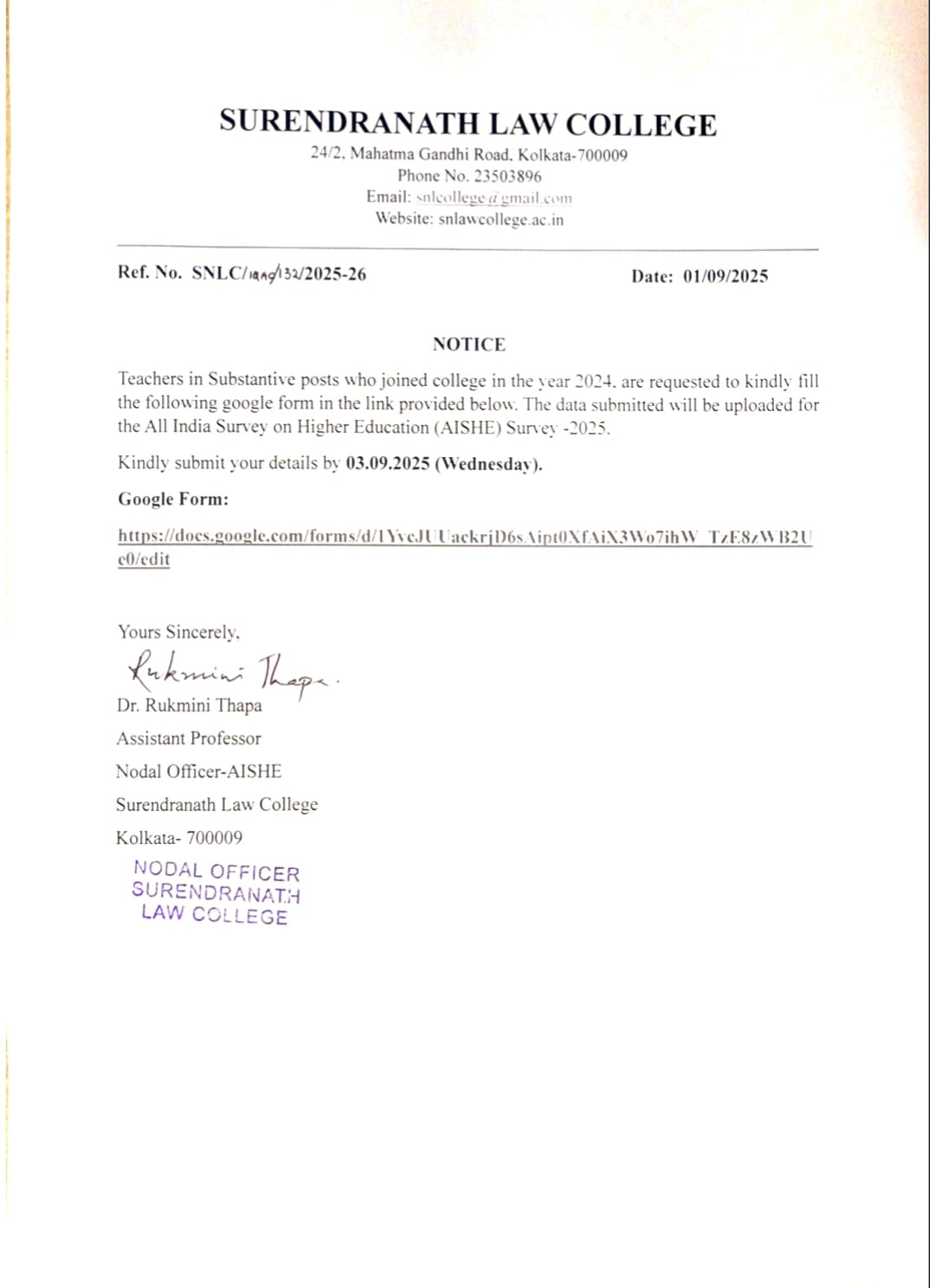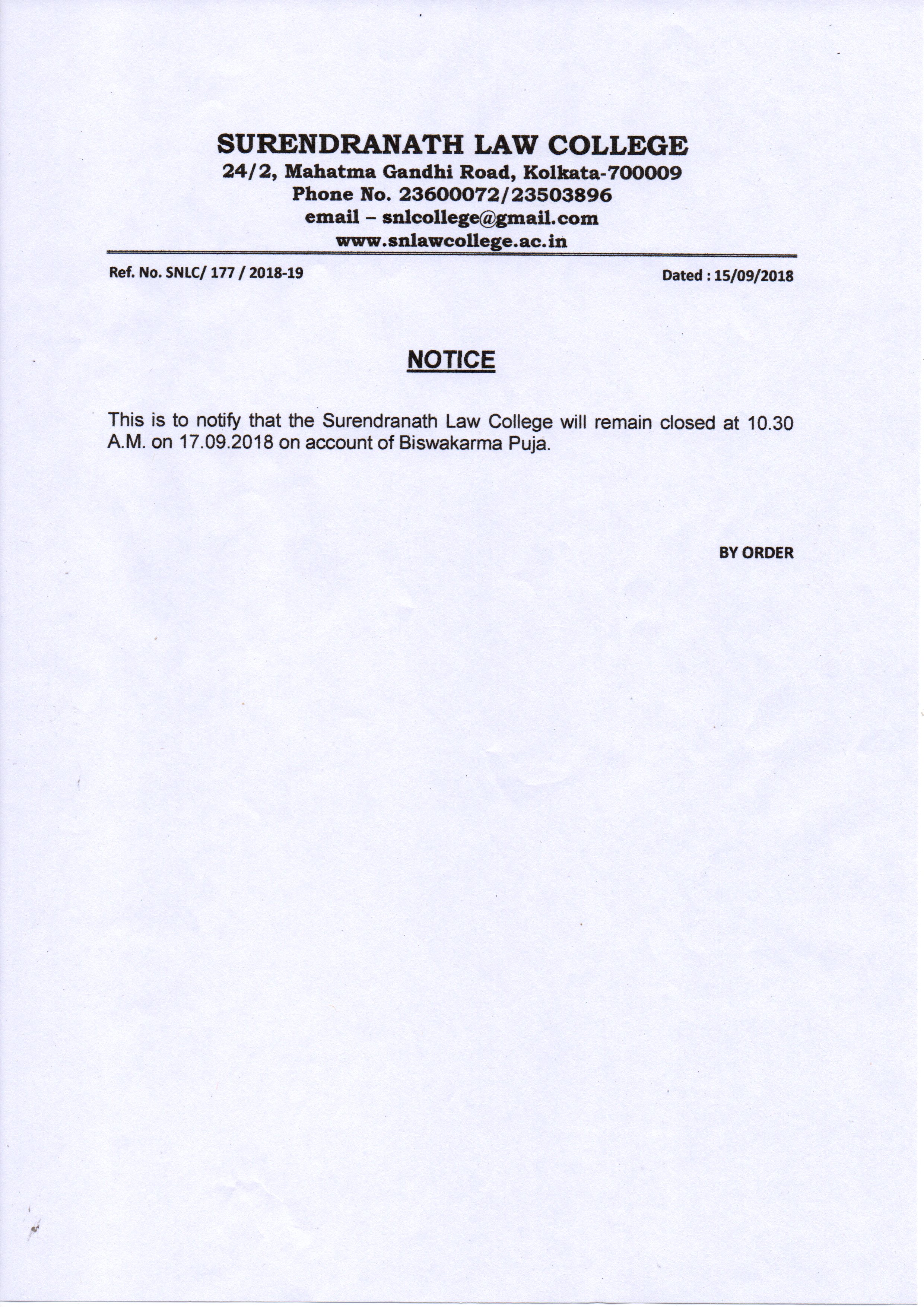 College shall remain closed on 02.03.2026 for electrification work in the college campus and on 03.03.2026 and 04.03.2026 on account of Dol Yatra and Holi Utsav 2026 respectively.