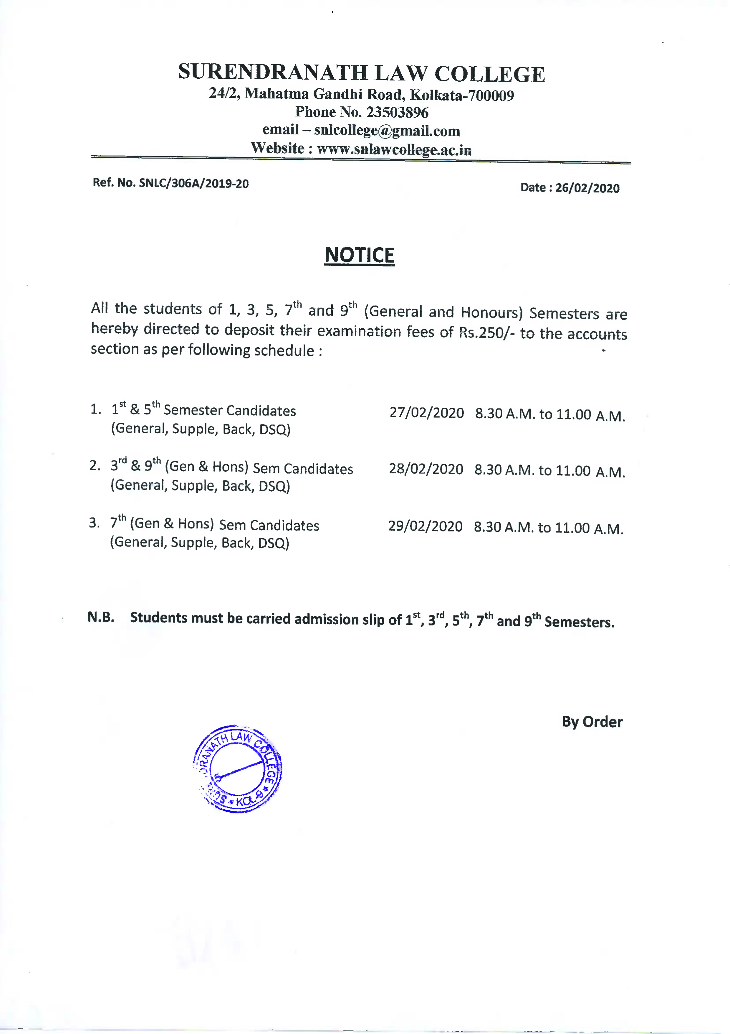 Notice 2, 4, 6, 8th Semester Students Form Fill Up & Exam Fees Deposit